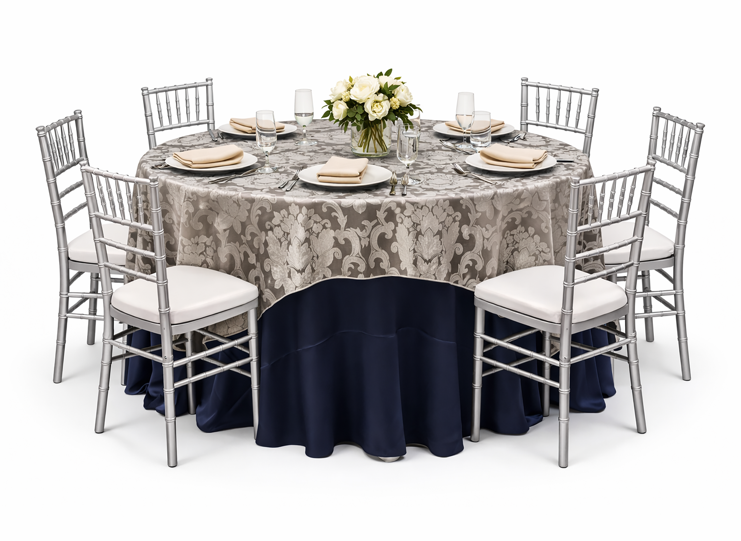 90”x90” Square, 90”x90” Square, 90"x156" Banquet, 15”x120” Runner (Square Corners)
